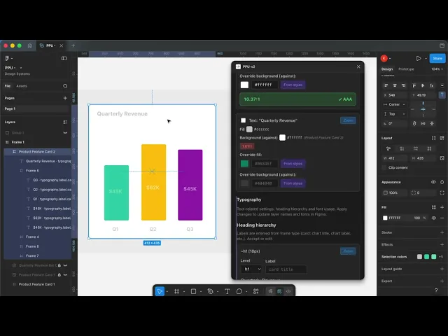 Audit frames for WCAG compliance, enforce brand tokens, reconcile typography hierarchy, and recommend semantic structure. Built with Cursor and the Figma Plugin API.