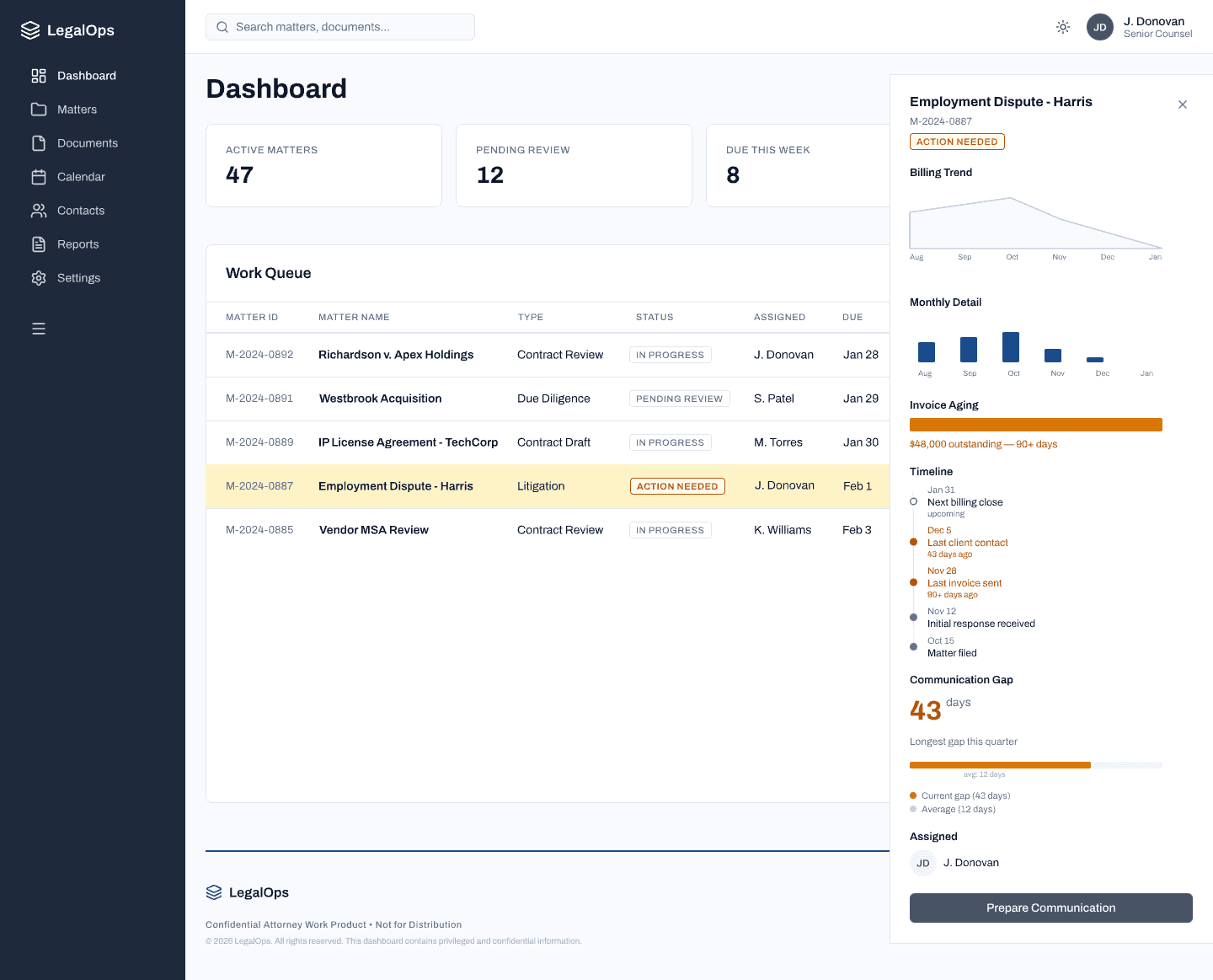 Legal professionals, particularly those responsible for billing and client communication, work under constant time pressure where missed signals can lead to revenue loss, strained client relationships, or downstream reputation risk.